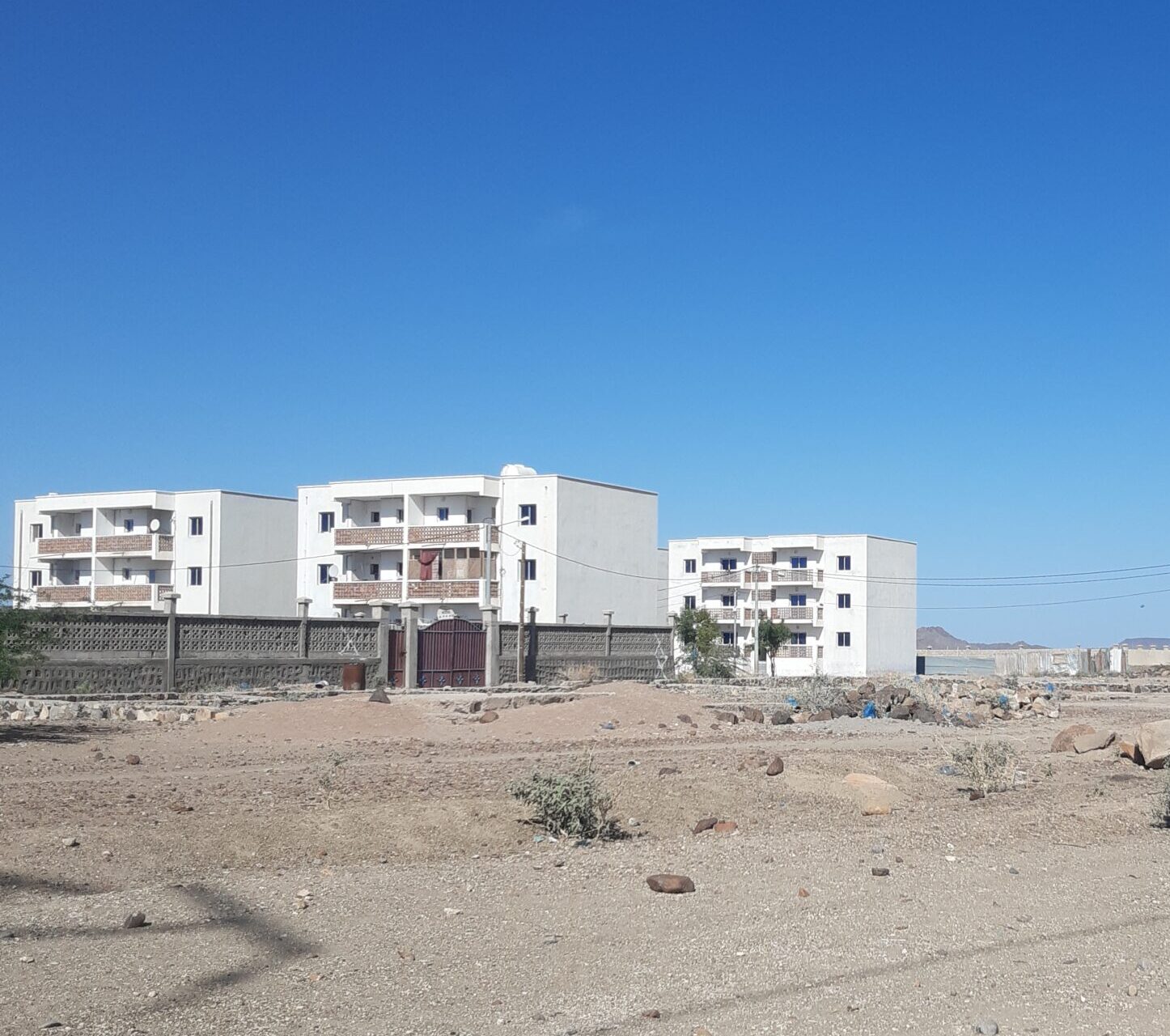 « Bandarada » signifie immeuble en somalii, les immeubles ne sont pas le mode d’habitation locale, mais l’organisation architecturale suit les habitudes locales, bien que vivre en appartement (espace restreint, bruit du voisinage) n’est pas habituel. A Ali Sabieh, il n y a qu’un seul lot d’immeuble (ci-contre).