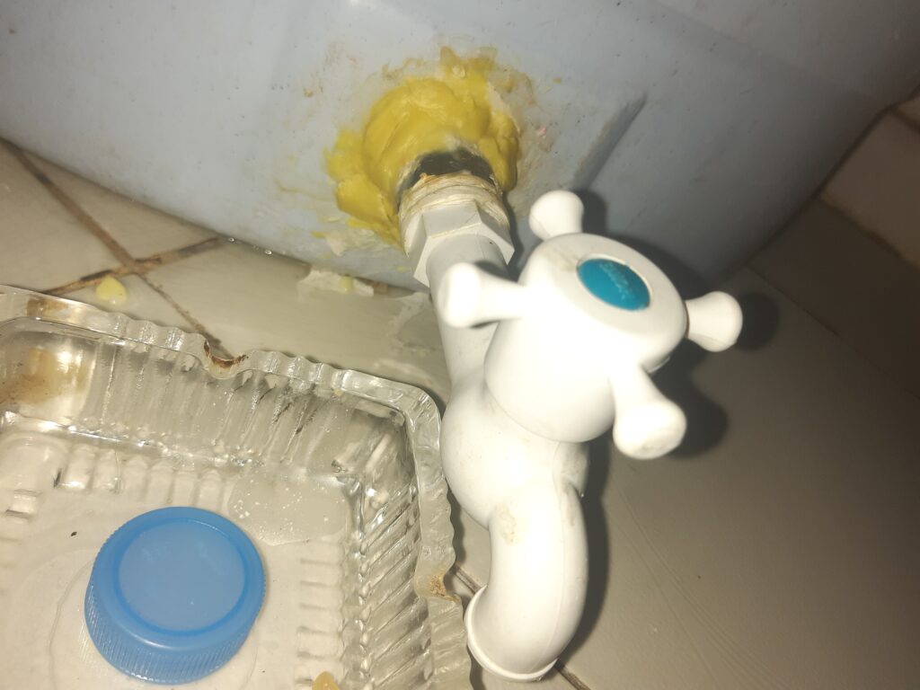 😊L’eau arrive par quartier de manière aléatoire (jours, heure, durée d’accès) et bien sûr, c’est souvent à des heures impossibles comme par exemple 01h ou 04h du matin, qu’il y a des couacs : ma canalisation qui se décroche, et l’eau qui se déverse à profusion ! En pleine nuit, des cafards grimpent sur mes mains pendant que j’essaye de trouver une solution… finalement sous les conseils de mes voisins, j’ai mis un gros caillou dessus pour la CANALISER !